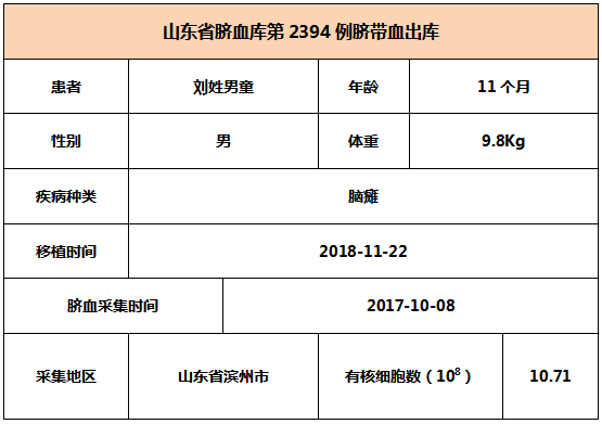 【出库病例】山东省脐血库第2393-2397例脐带血出库