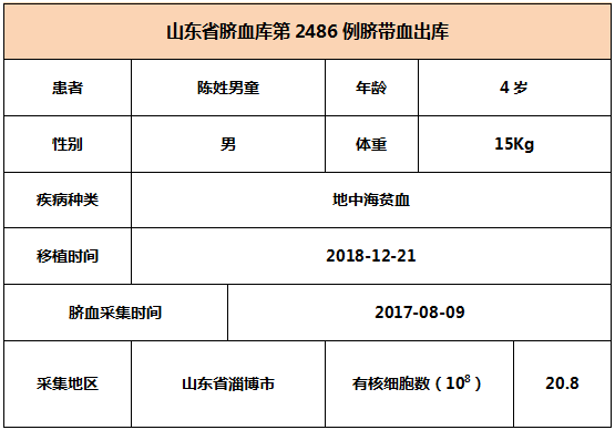 【出库病例】山东省脐血库第2483-2487例脐带血出库