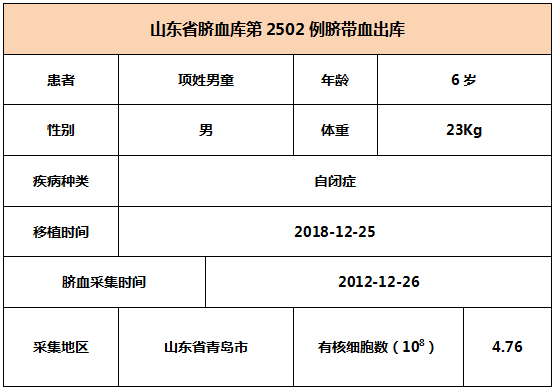 【出库病例】山东省脐血库第2503-2507例脐带血出库