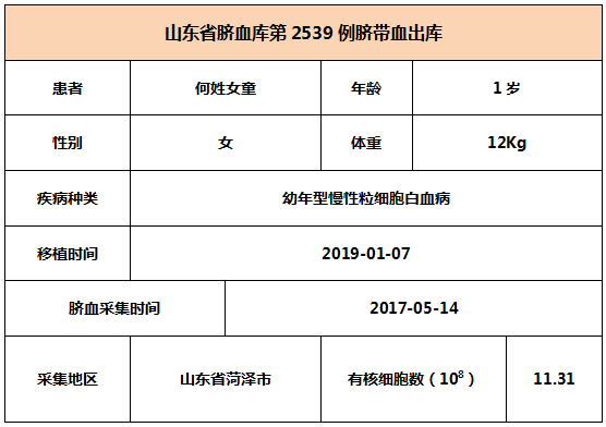 【出库病例】山东省脐血库第2538-2542例脐带血出库