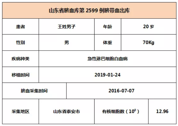 【出库病例】山东省脐血库第2599-2601例脐带血出库