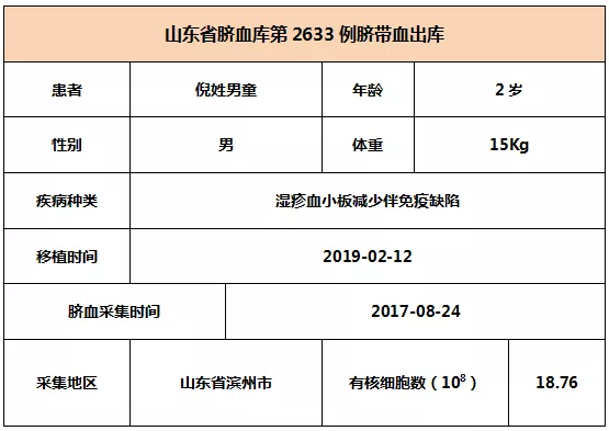 【出库病例】山东省脐血库第2632-2634例脐带血出库