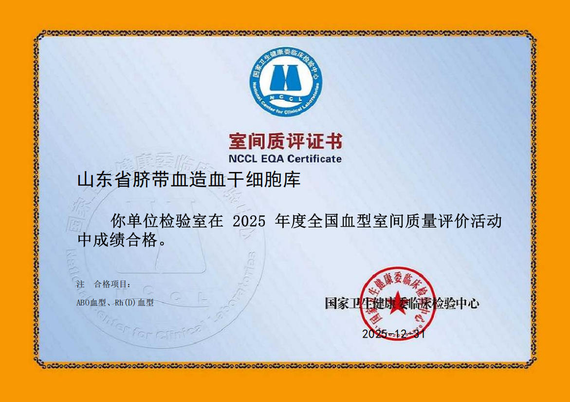 山东省全血细胞计数检验室间质量评价证书