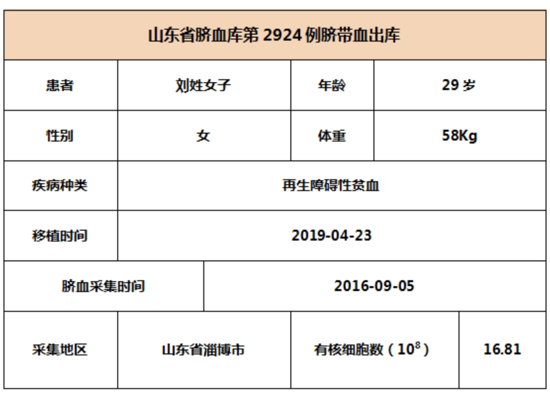 2019年4月23日,29岁刘姓女子因患再生障碍性贫血,在辽宁某三甲医院接受脐带血移植,本次移植的脐带血与患者6/10位点相合,有核细胞数为16.81*10^8。整个输注过程很顺利,无不良反应,愿患者早日恢复健康。