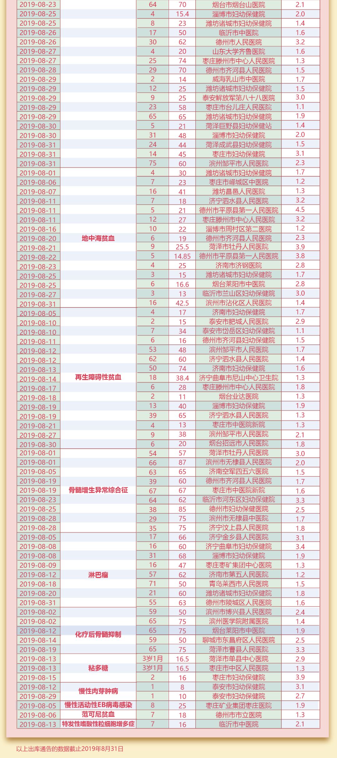 山东省脐血库8月共出库脐带血